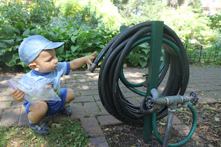 I finally got to play with a real hose! I have heard all about it in both the "firefighter" and "garden" books..